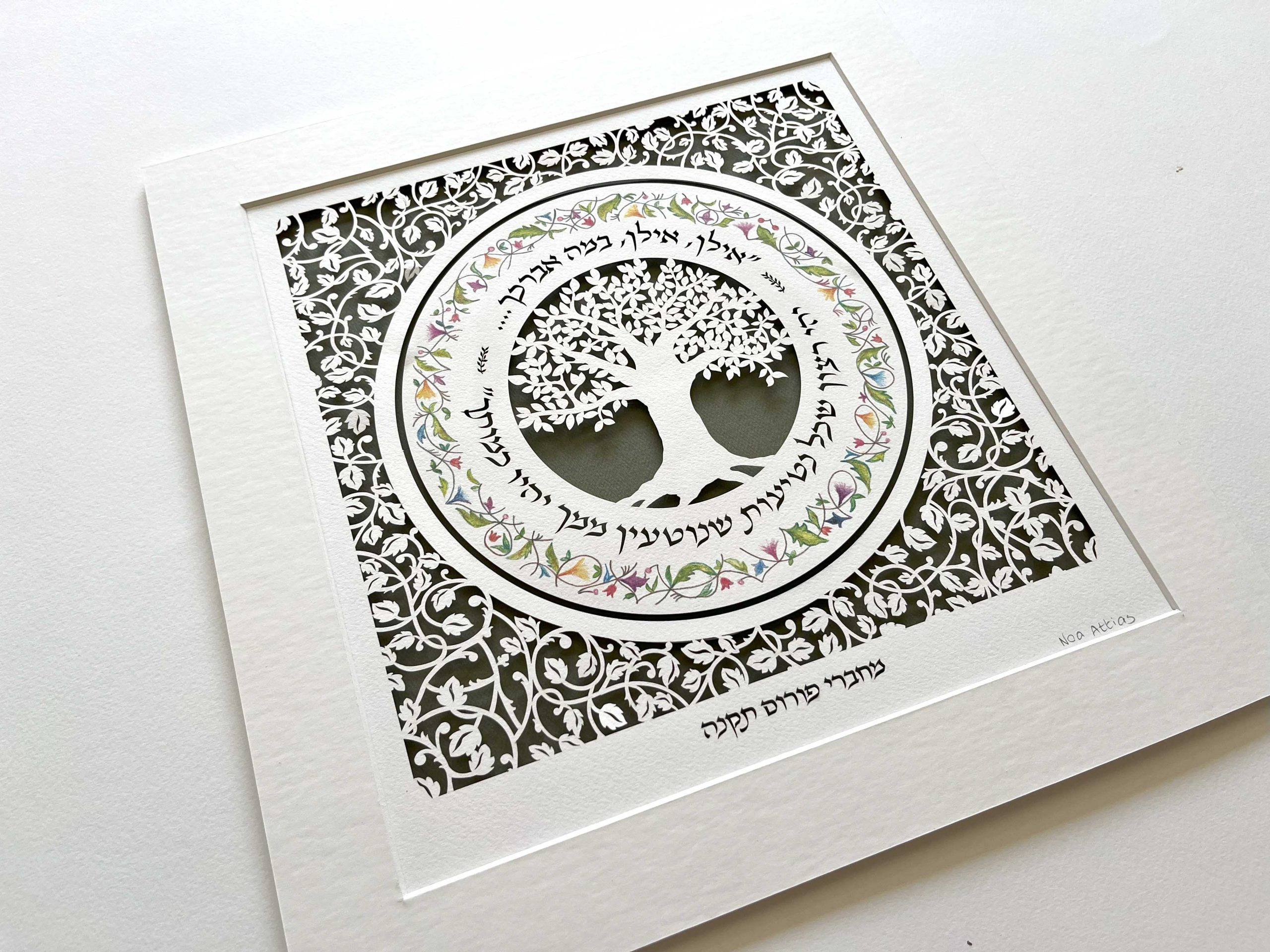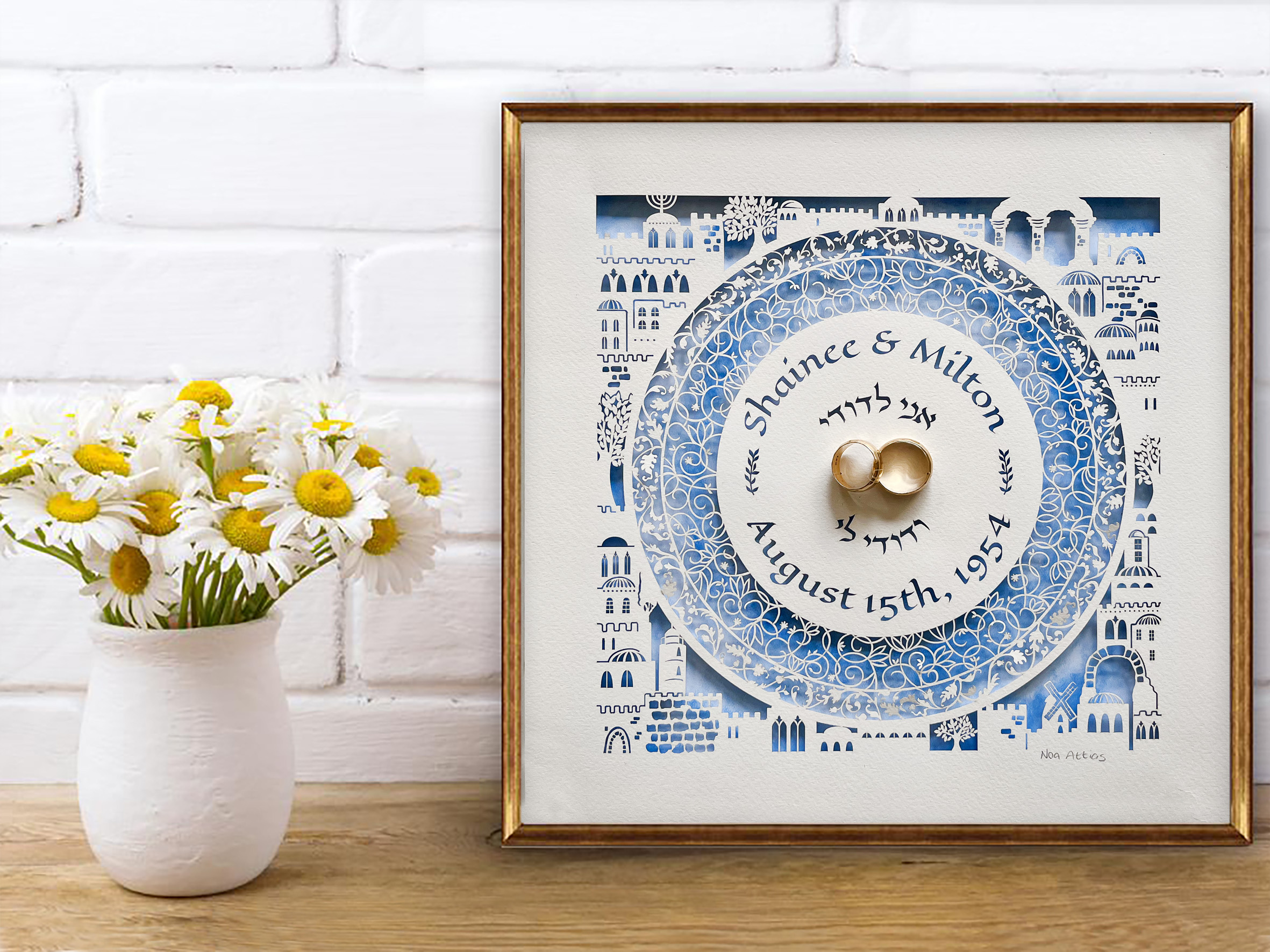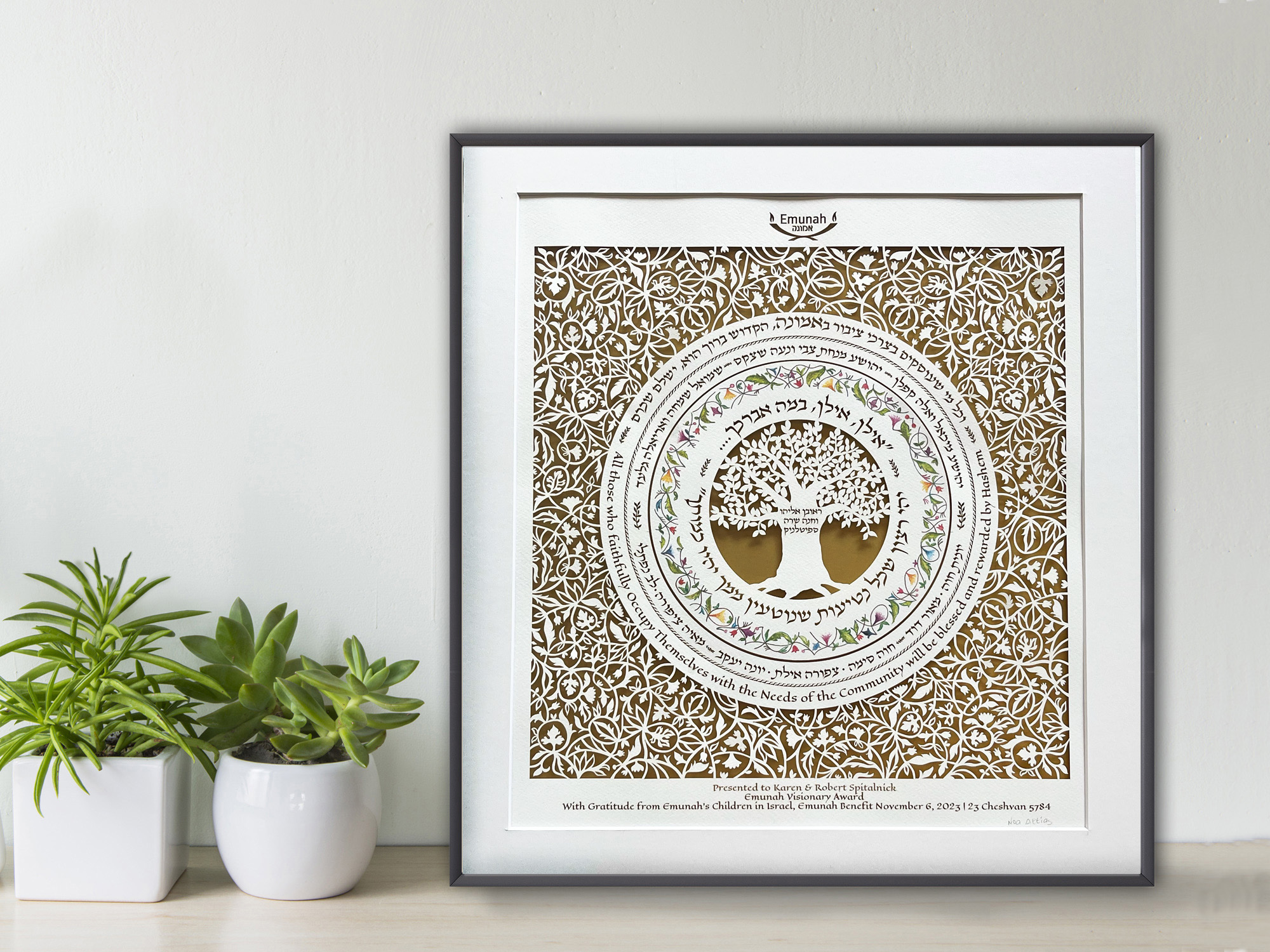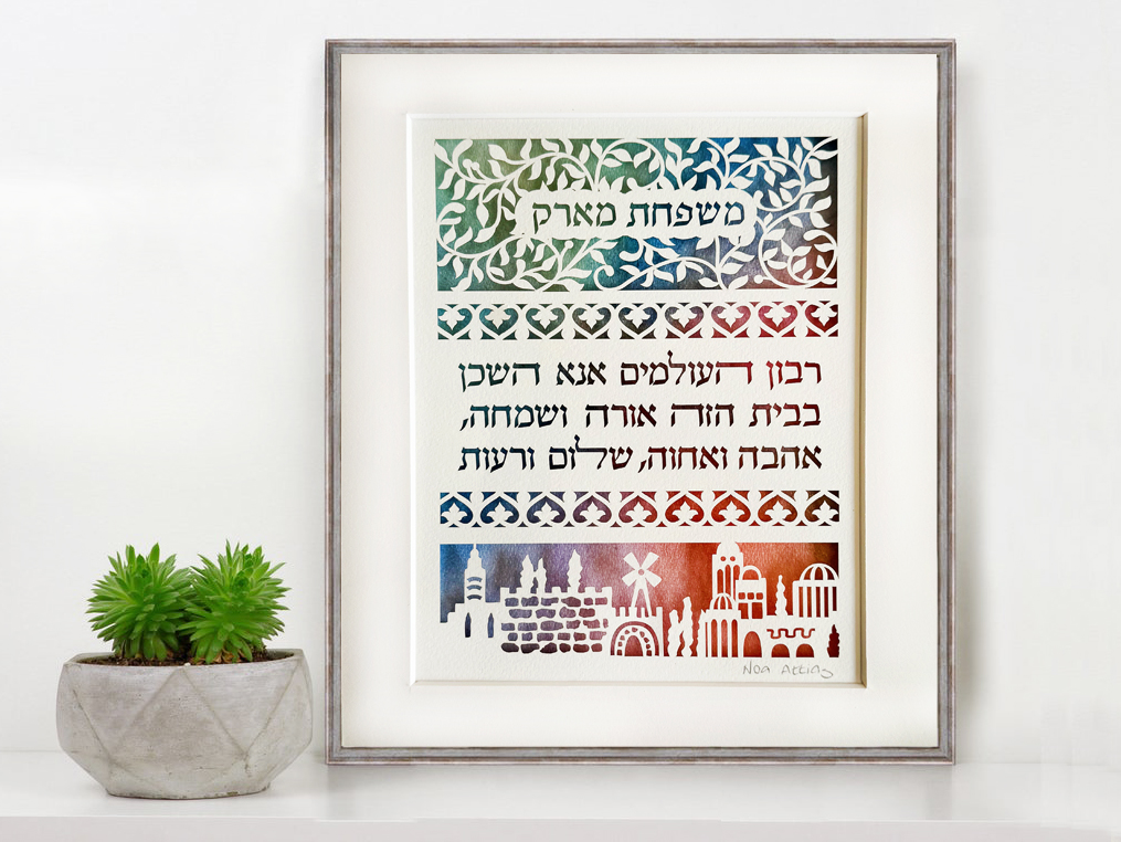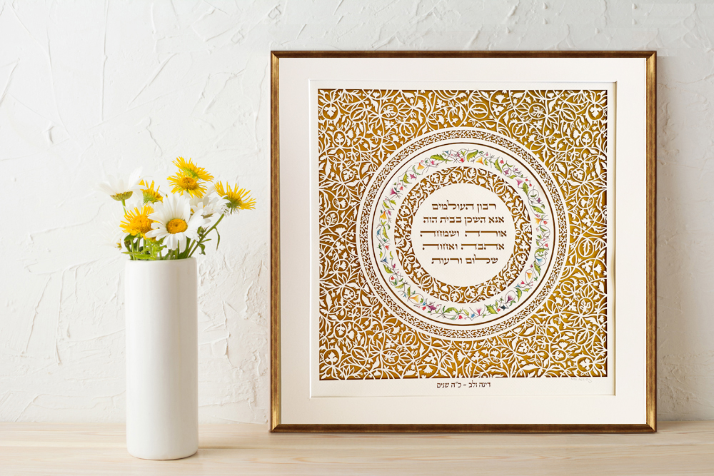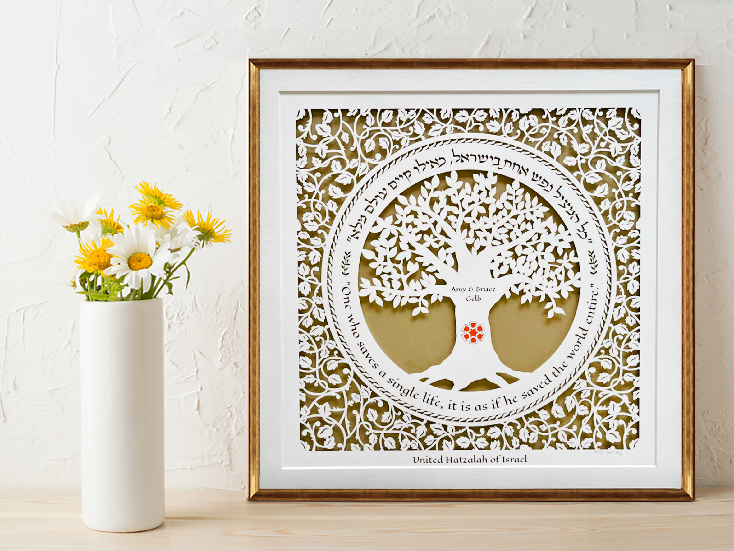 Show your loved ones how much you care with meaningful Judaica papercut art. A custom piece of art makes a unique and memorable gift. Is your school, synagogue or organization hosting a banquet? These papercuts also make the perfect gift for a Rabbi, Jewish community leader, teacher, major donor, or as a token of appreciation for service or achievement.