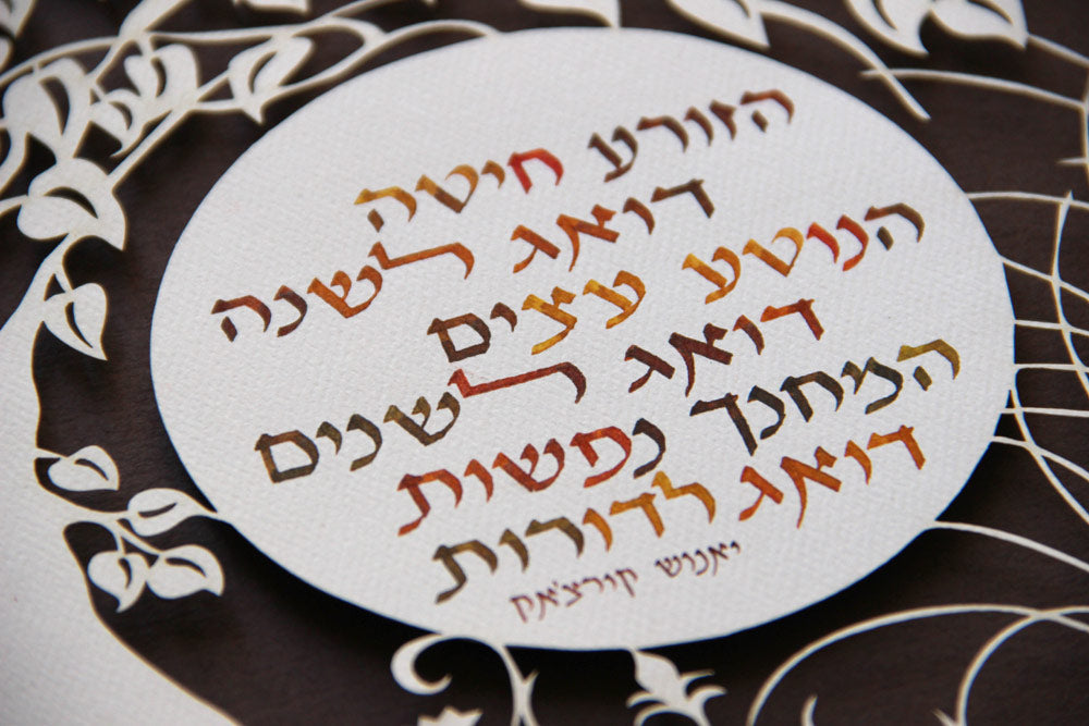 This unique paper cut has the famous quote of Yanush Korchack: “The sower of wheat cares for the year, the planter of trees cares for years, the educator of souls cares for generations”