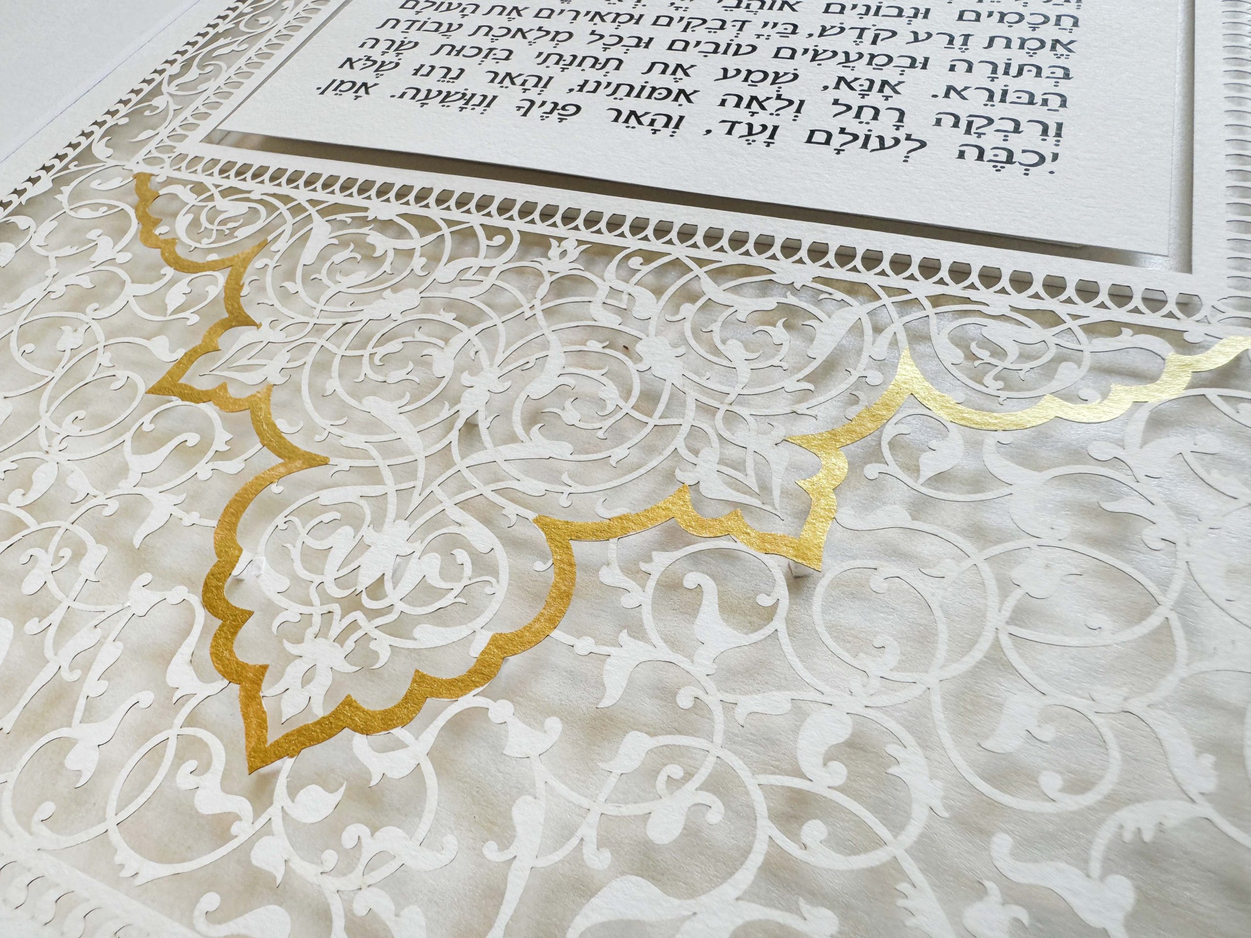 Surrounding the blessing, is my paper cut design by laser cutting