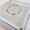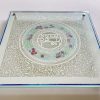 This beautiful Shabbat Challah Board made with a 24k Gold border rim has a Jerusalem cut design with the central Blessing, “who brings forth bread from the earth”Â