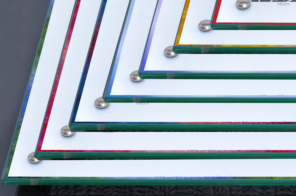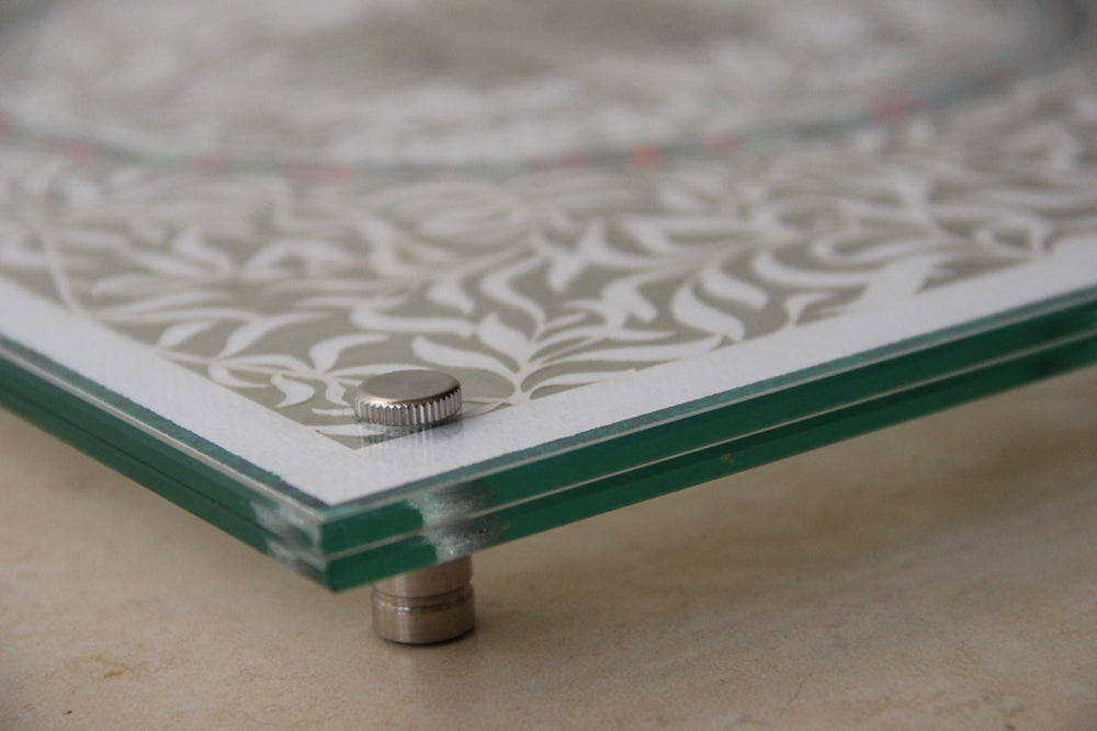 The paper cut is set between two pieces of tempered glass that prevent the board from getting scratched it is totally and sealed so water won’t enter the Cutting Challa board.