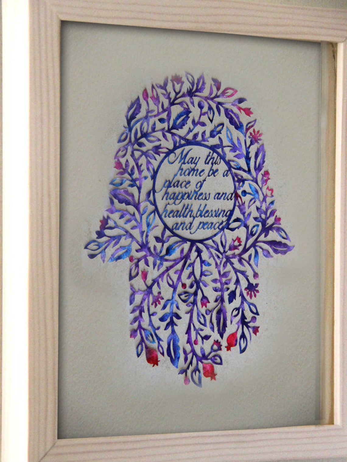 The Hamsa comes framed and ready for hanging, please choose you requested frame in the variation section on the checkout. It is a unique piece of art that will least with beautiful colors for many years.