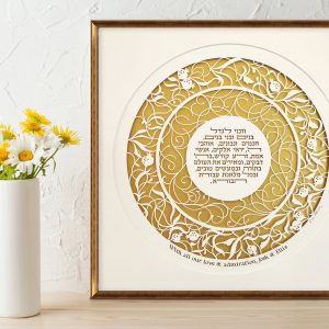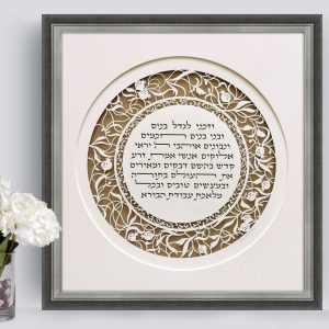 This original House Blessing paper cut by Israeli artist Noa Attias is a stunning work of art that will draw gasps of wonder from all who behold its beauty!