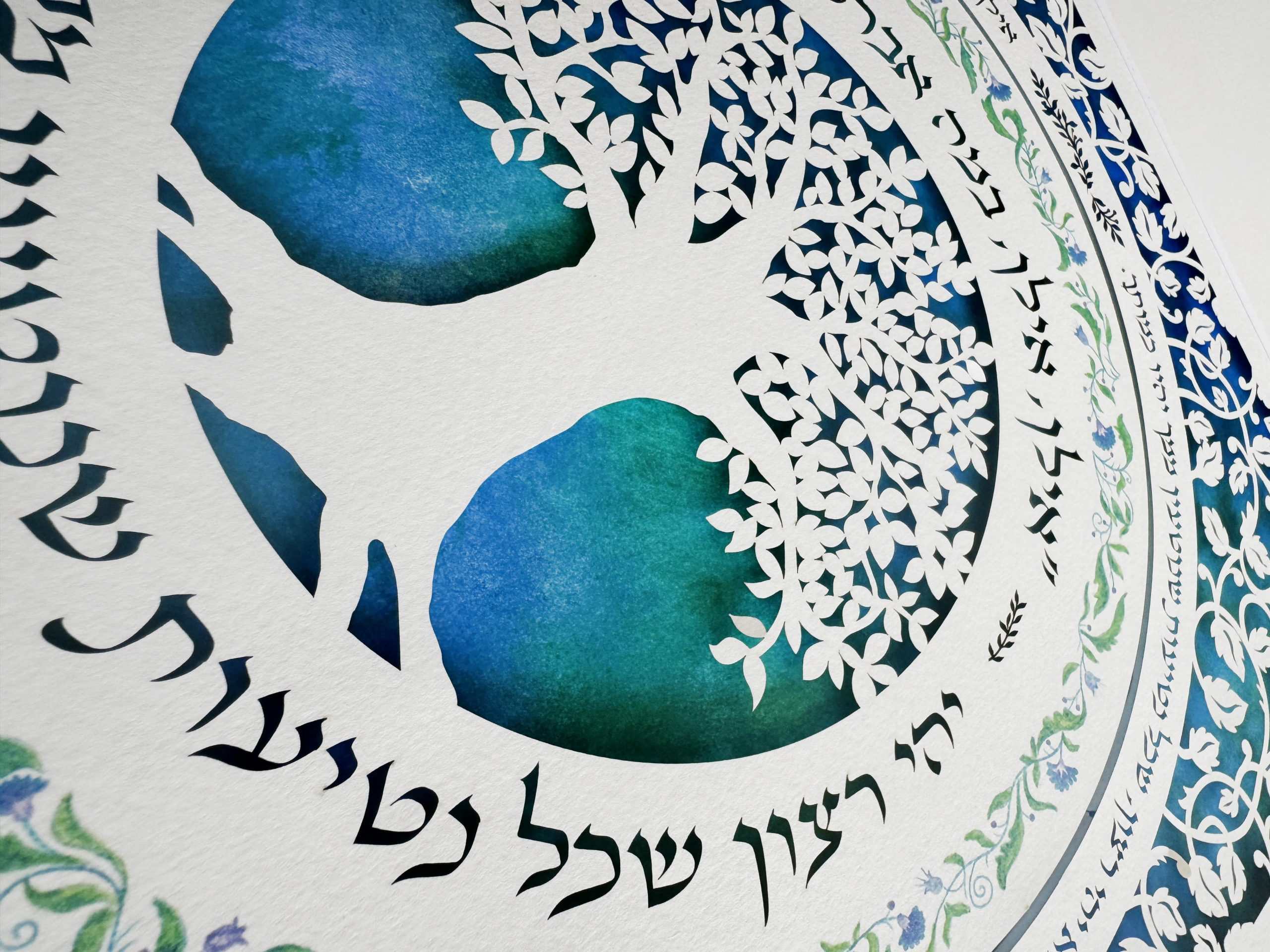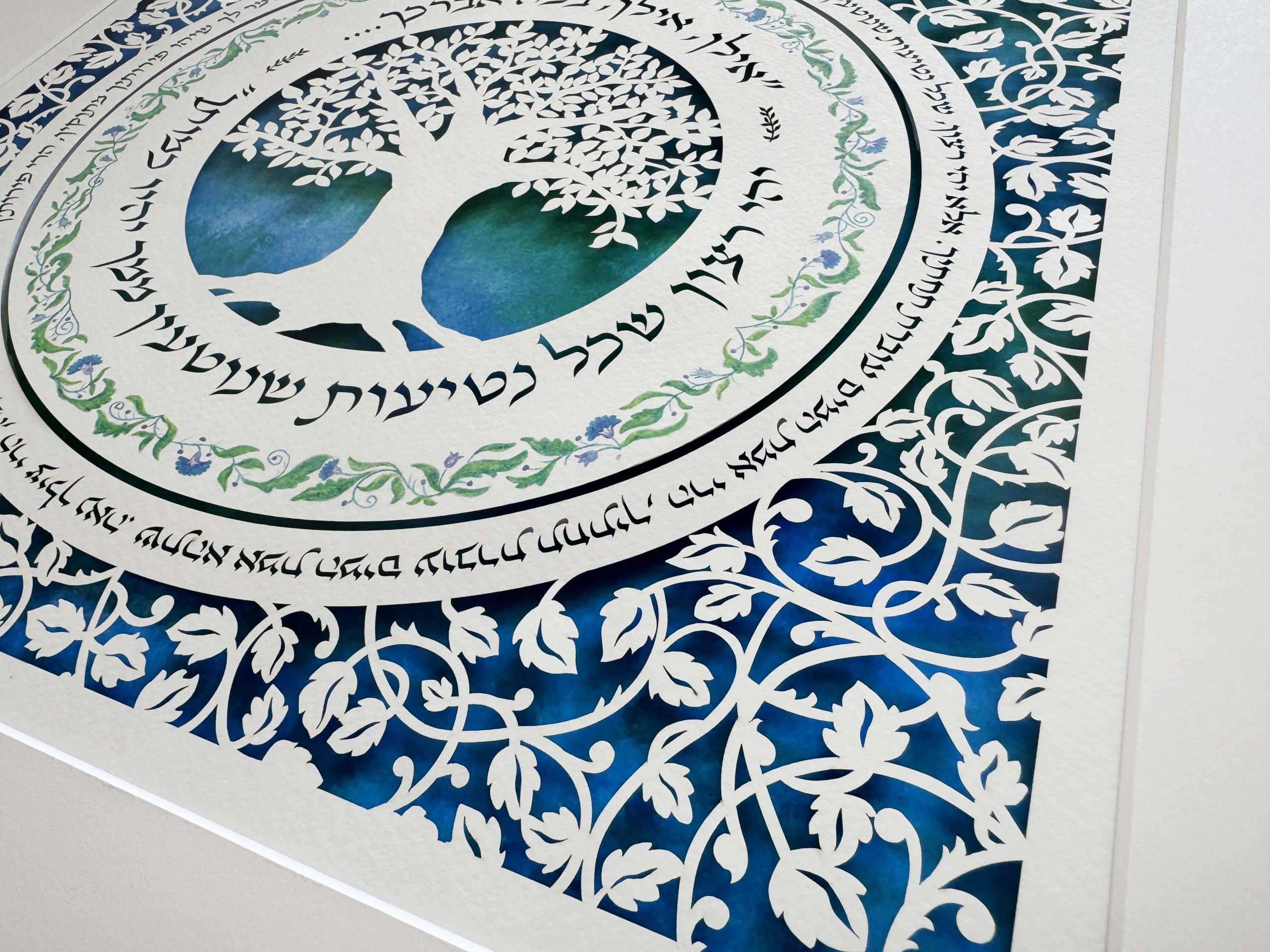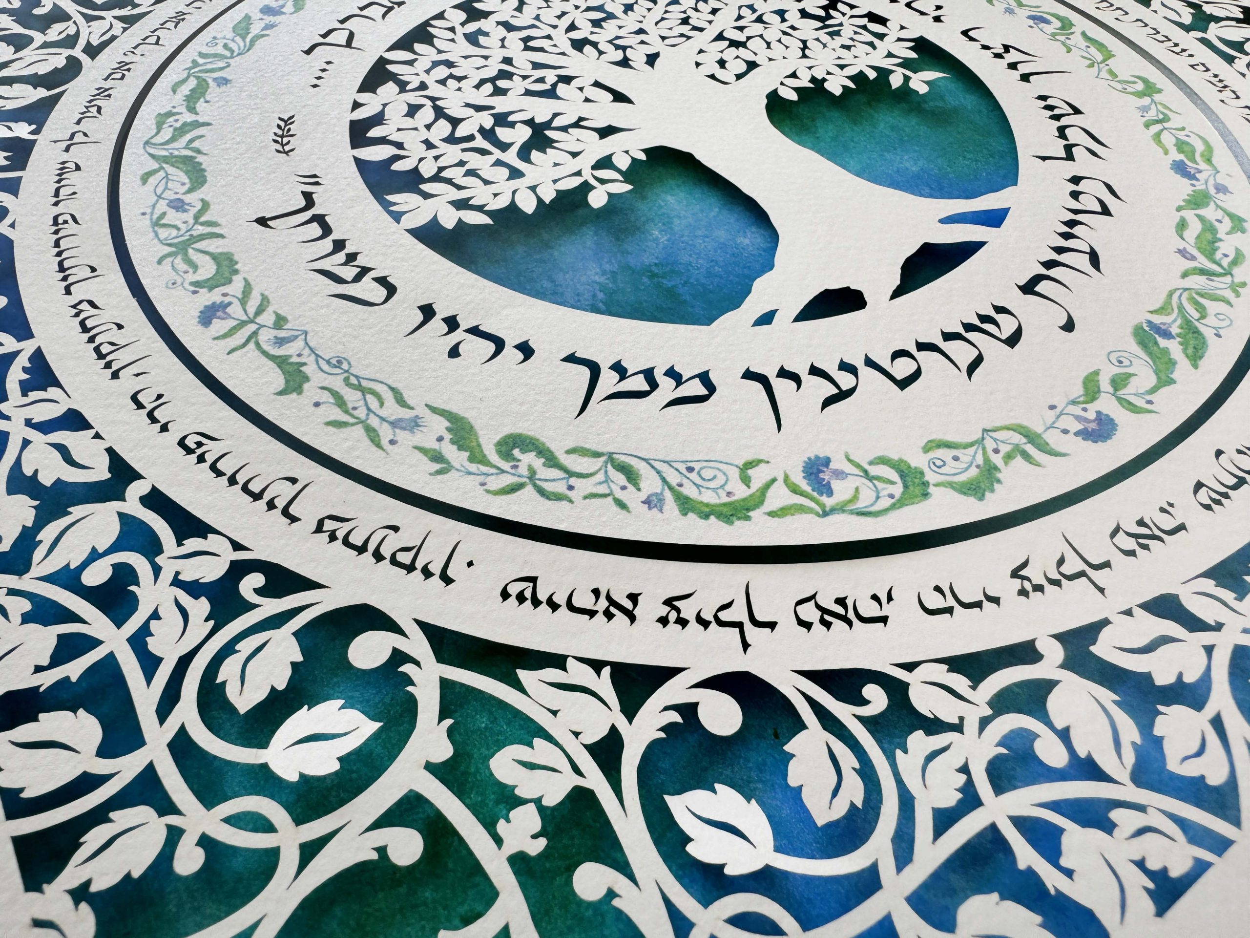 This unique paper cut has the song “אילן, אילן במה אברכך…. יהי רצון שכל נטיעות שנוטעין ממך יהיו כמותך”