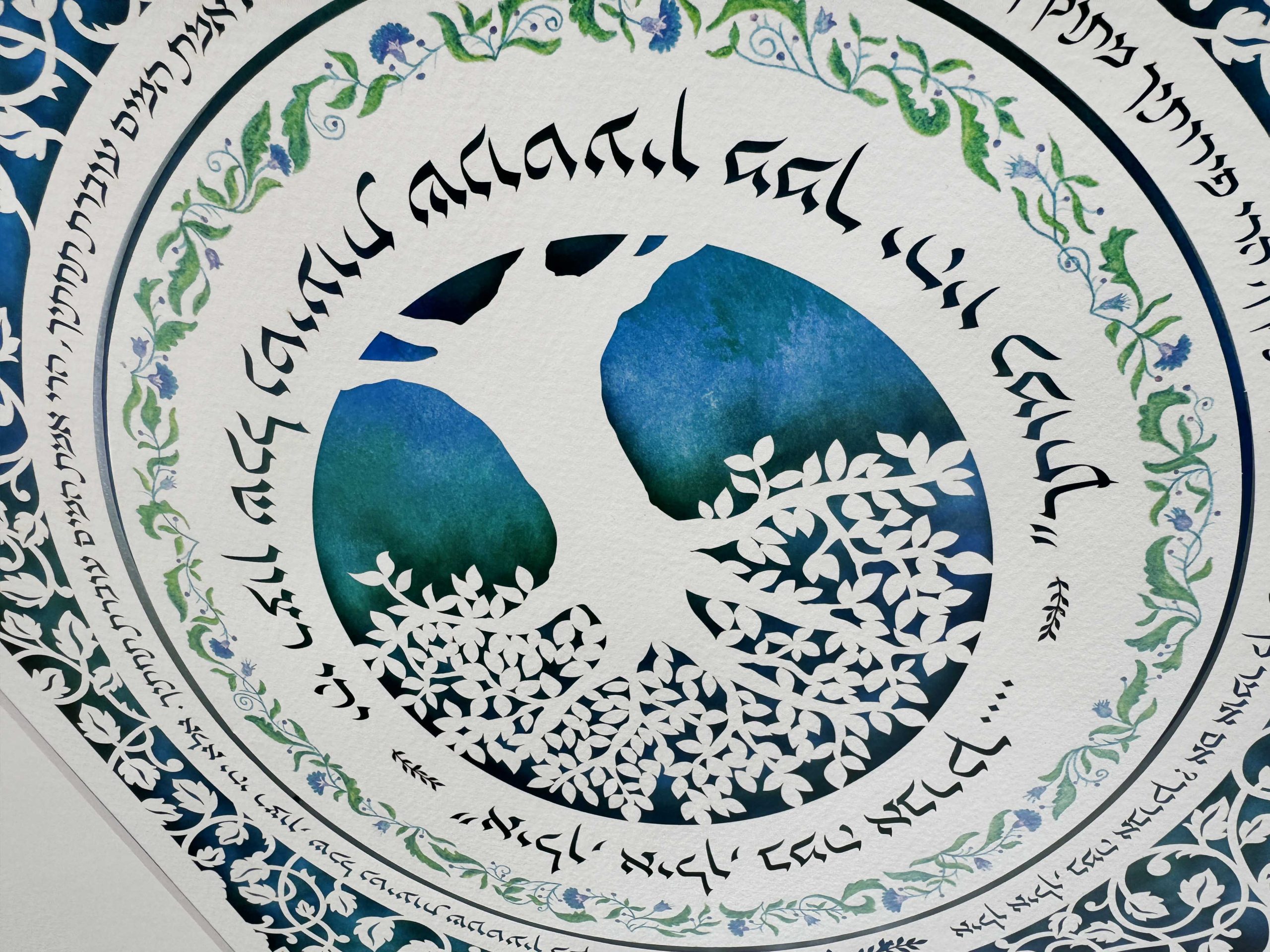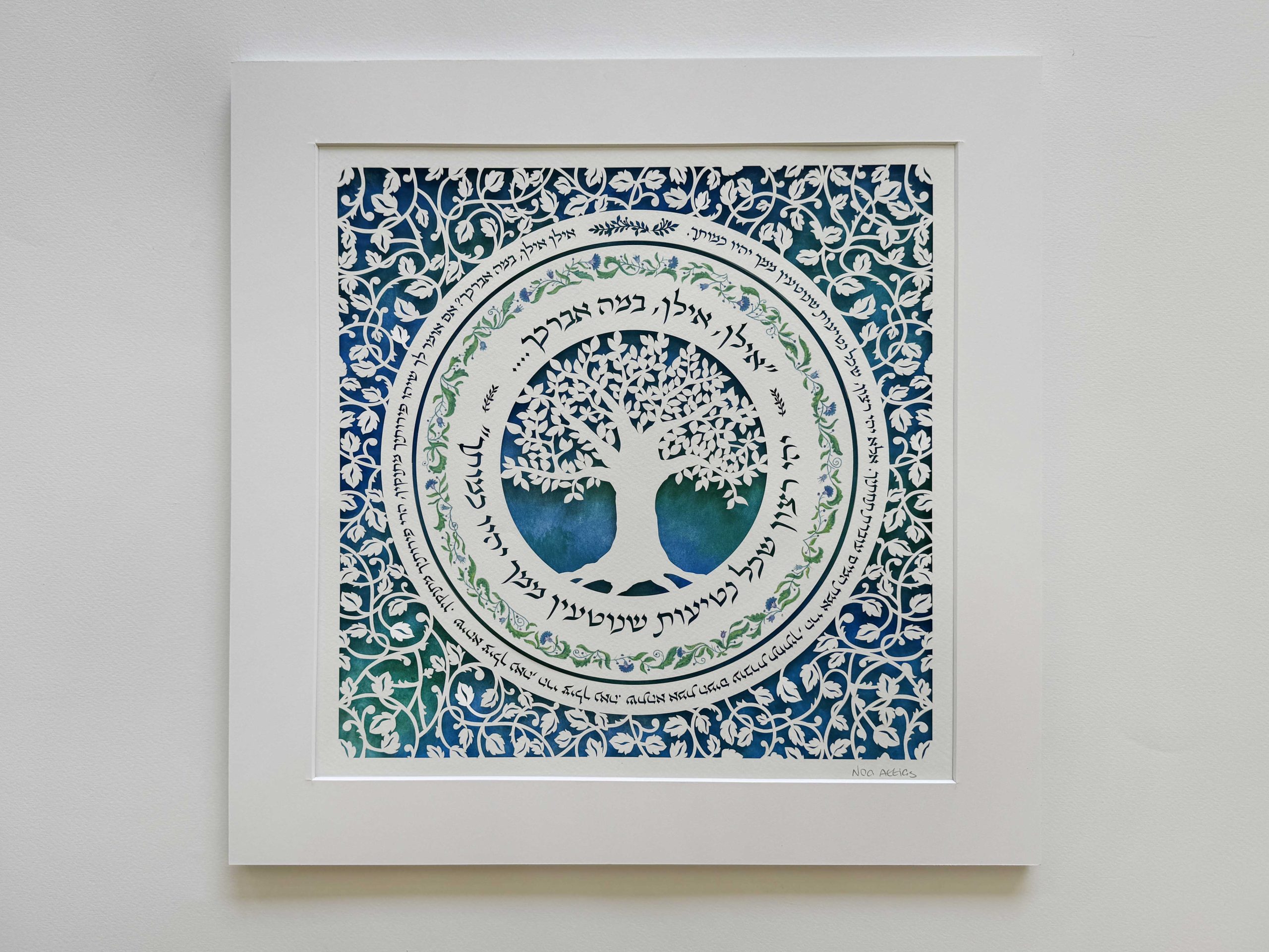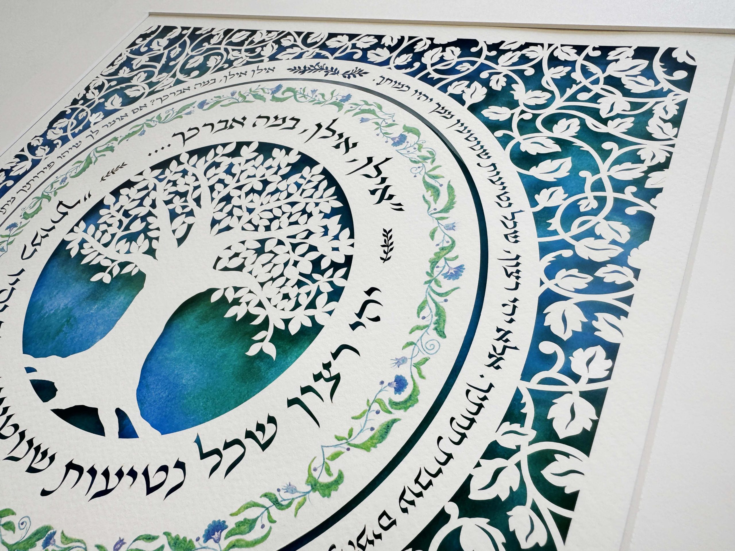 This unique paper cut has the song “אילן, אילן במה אברכך…. יהי רצון שכל נטיעות שנוטעין ממך יהיו כמותך”