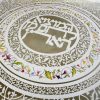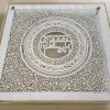 This beautiful Cutting Challah board made with a 24k Gold border rim has a cut design with the central Blessing, “who brings forth bread from the earth” which is surrounded by the Blessing “You open your hand, and satisfy the desire of every living thing.”