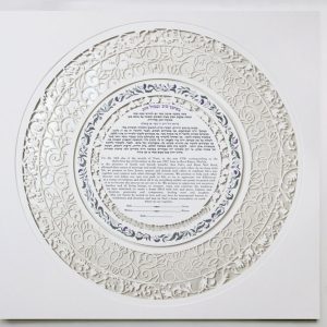 Our Ketubahs are cut out on fine art paper of the highest quality and the text flowers and Background are printed on Gicle Museum art paper.