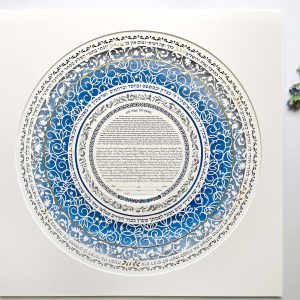 Our Ketubahs are cut out on fine art paper of the highest quality and the text, flower circle, and backround is printed on Gice Museum art paper.