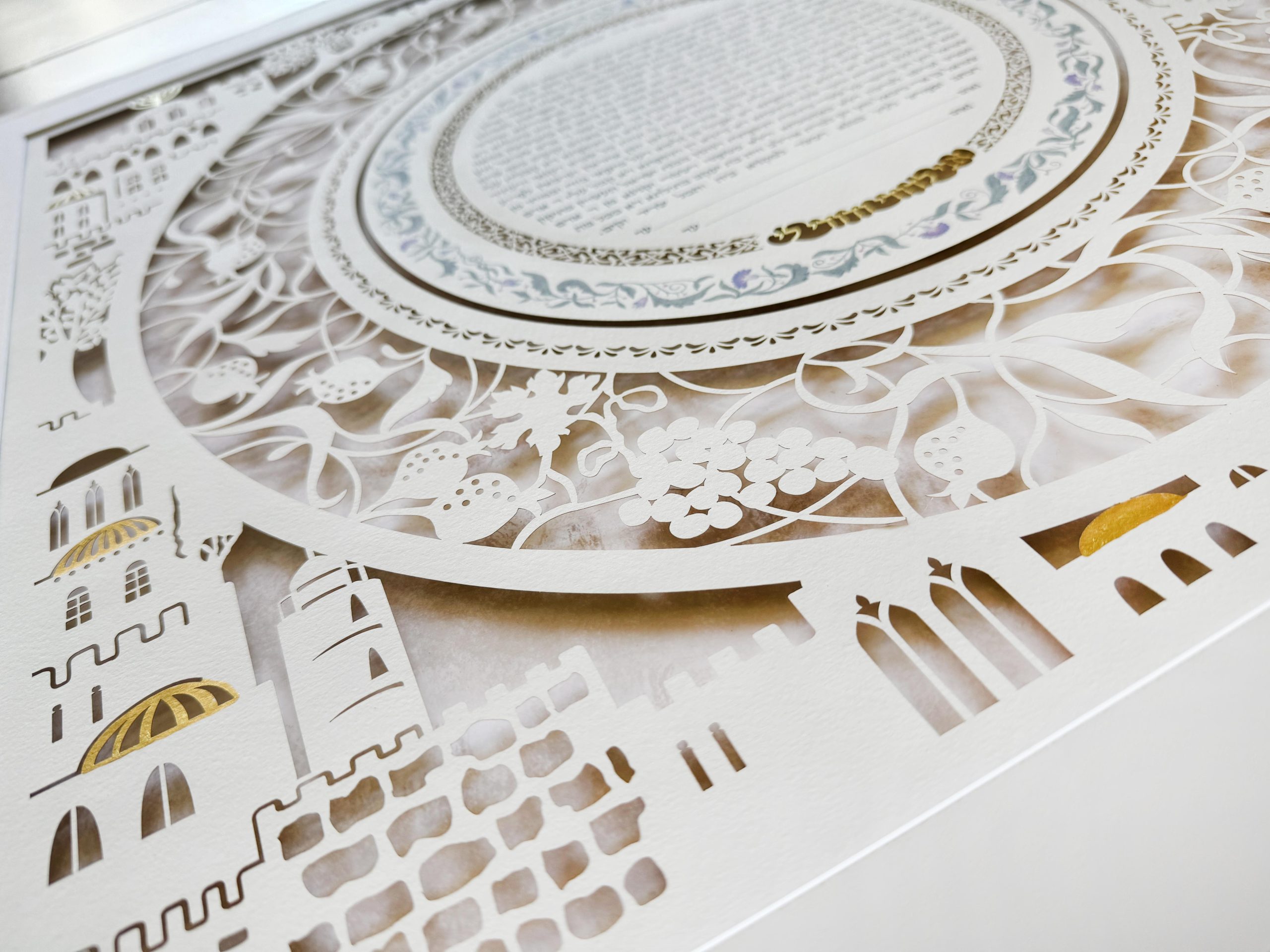 This is a Unique and elegant paper cut ketubah is for you to keep as a lifetime memory from your most special day. And the perfect wedding vows picture for you!