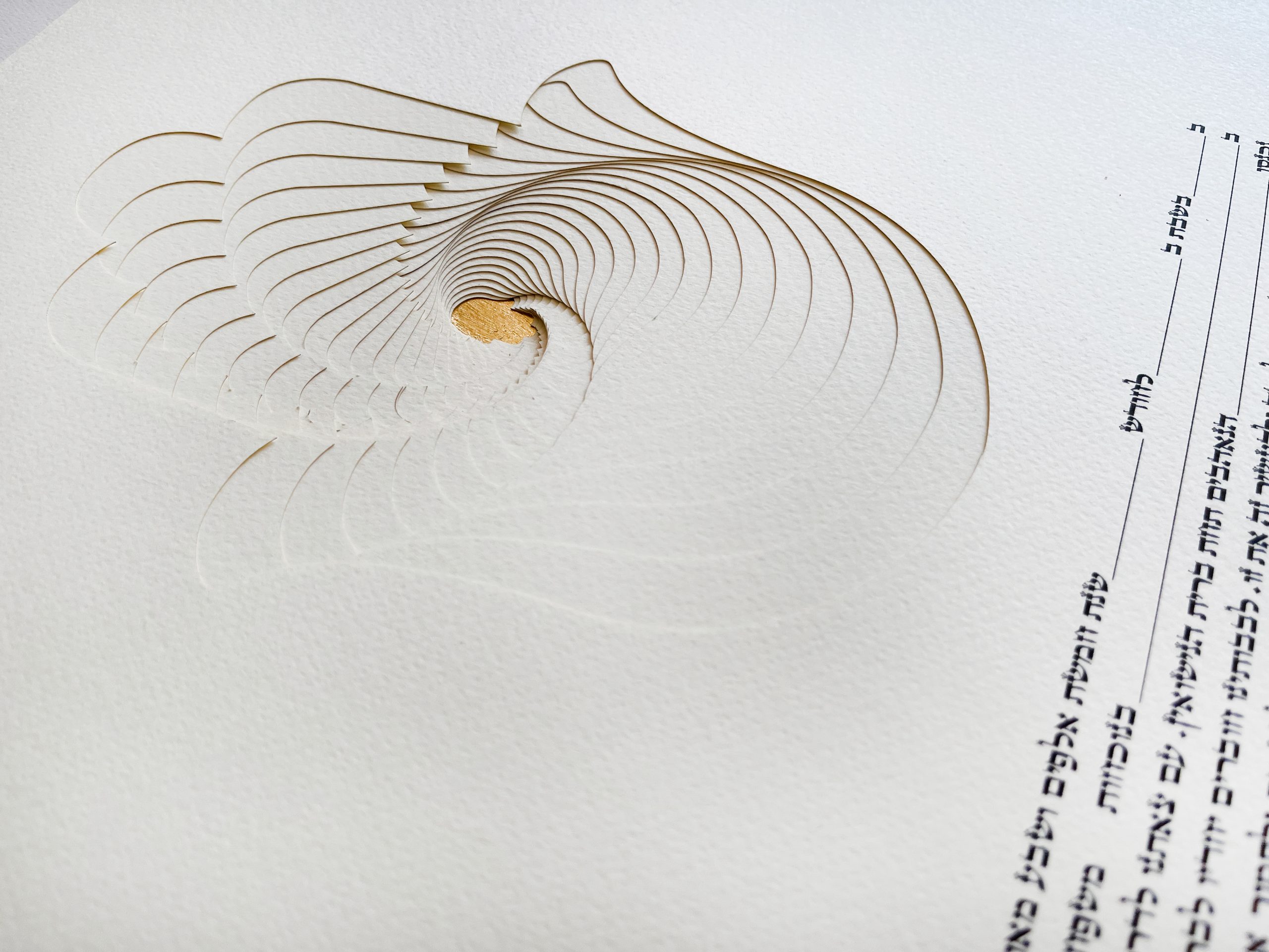 This ketubah is made of high-quality paper and the result is a fine art piece. All paper that is used is acid-free to promise many years to enjoy the ketubah. It is a Papercut Ketubah with a digital gicle print, having a modern design. This ketubah is unique and it will impress all the guests.