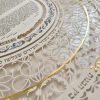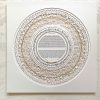 It is a cut out of leaves, flowers and the vine with a Pearl shimmer background and Gilded with 24K Gold on the letters and on the circle