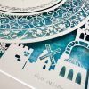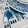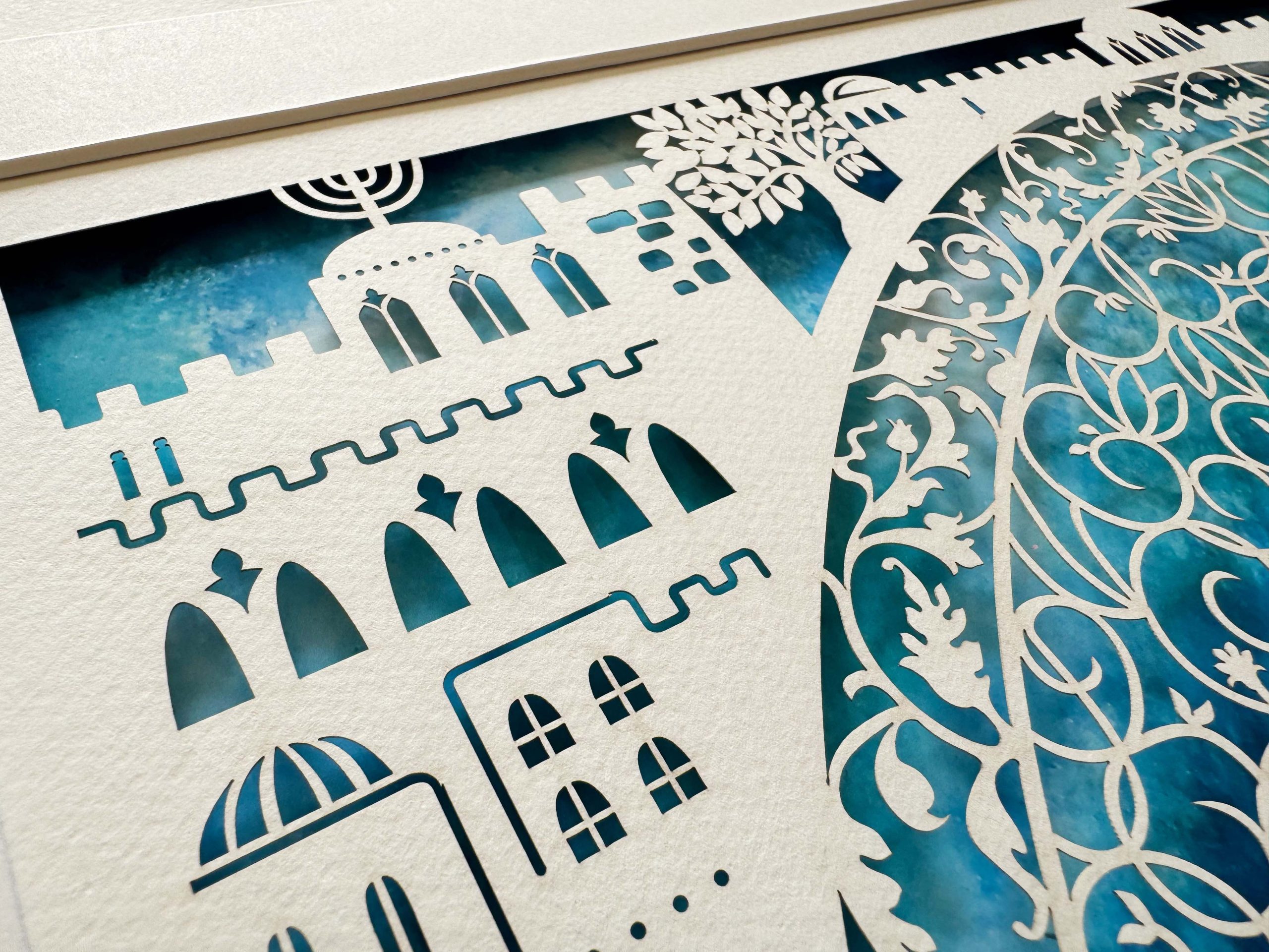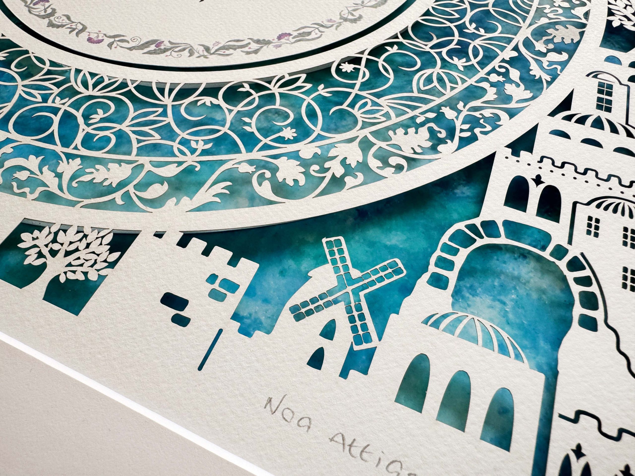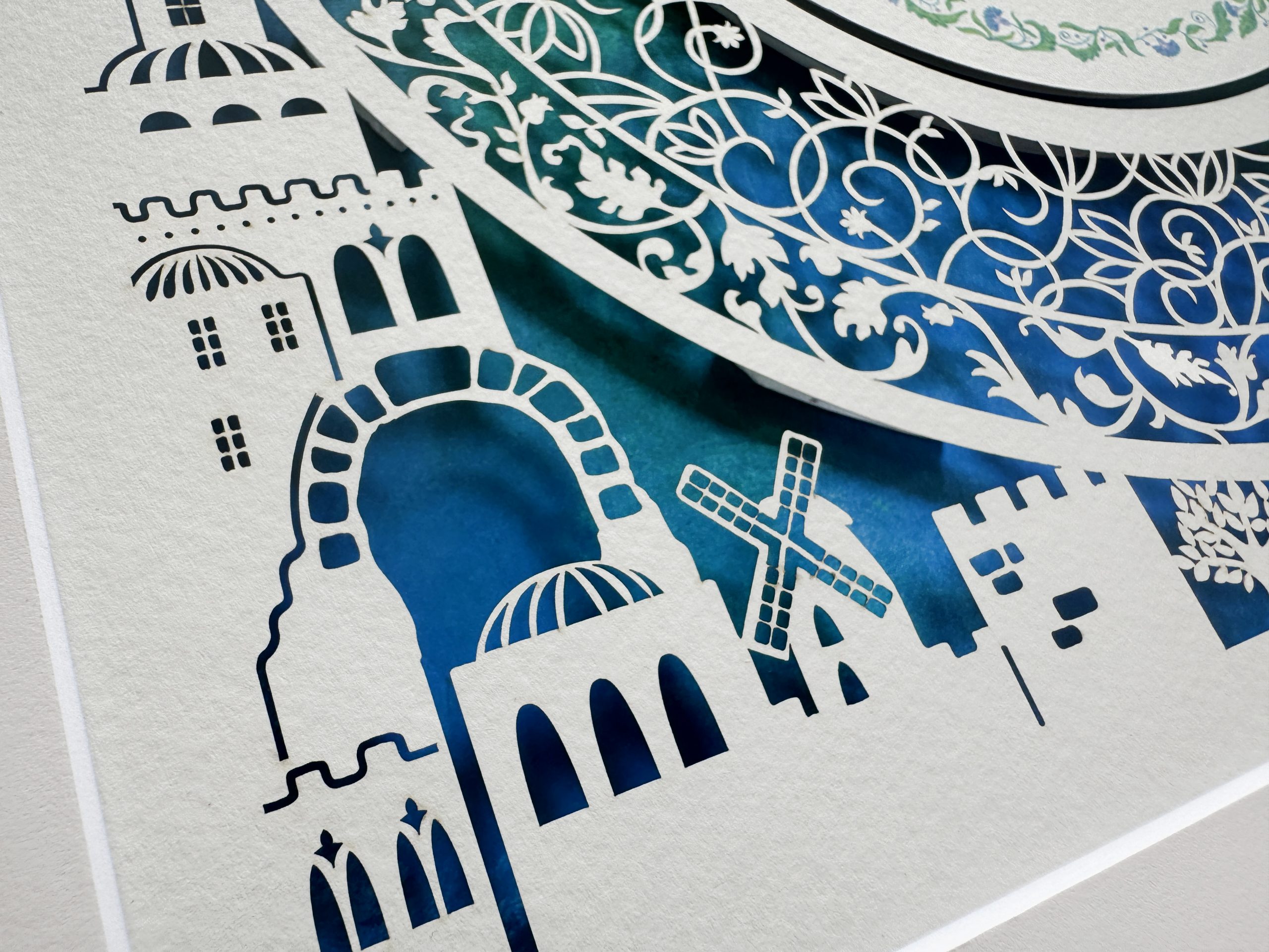 Our paper cuts are cut out on fine art paper of the highest quality and Comes with a hand-painted background in either Blue, Purple, Gray, Turquoise, Blue&Purple, Burgundy, Green, Gold&Silve, Blue&Burgundy or Multi-color printed on Giclée Museum art paper.