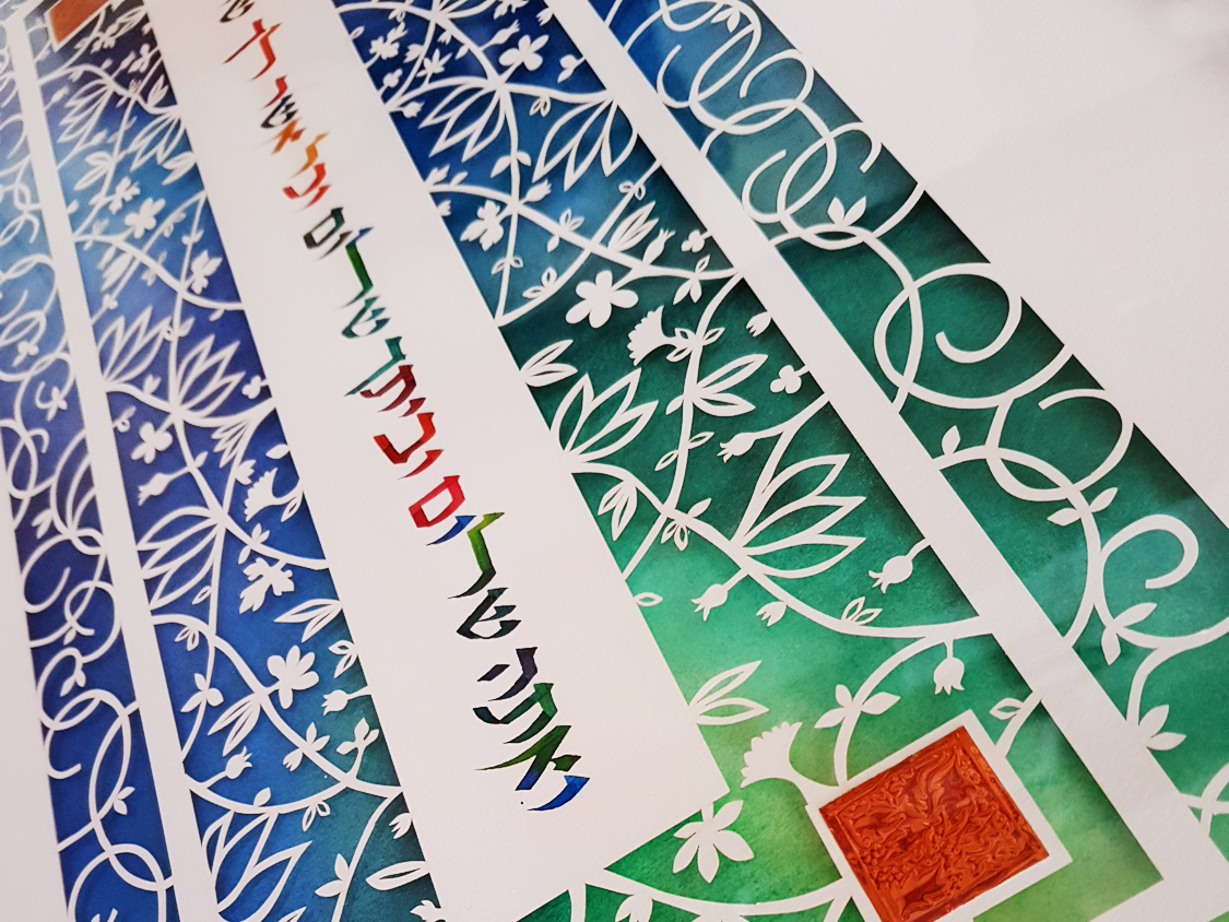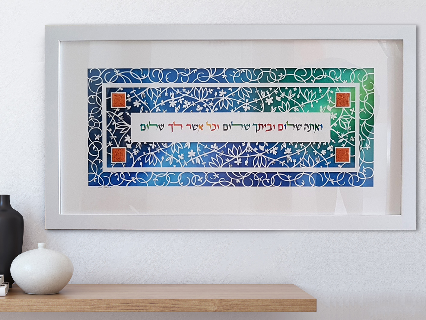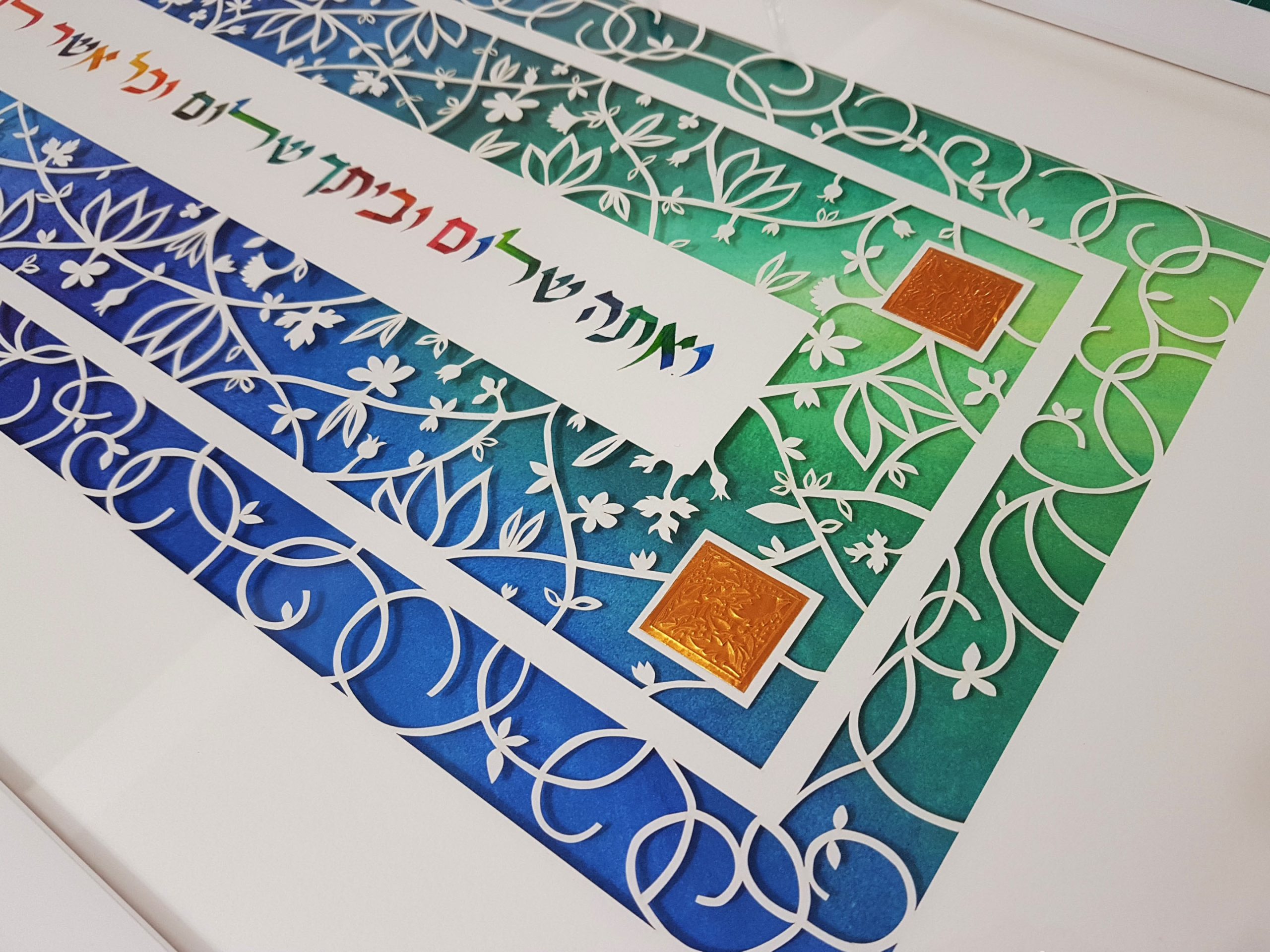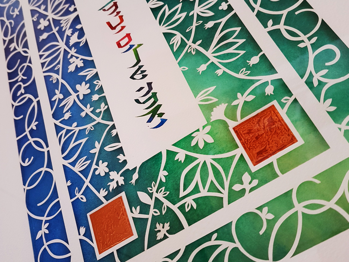 This original design by Israeli artist Noa Attias is a stunning work of art that will draw gasps of wonder from all who behold its beauty!and will make a wonderful housewarming gift, anniversary gift, or decoration for any home. A particularly lovely wedding or anniversary gift!