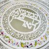 This beautiful Shabbat Challah Board made with a 24k Gold border rim has a Jerusalem cut design with the central Blessing, “who brings forth bread from the earth” which is surrounded by the Blessing “You open your hand, and satisfy the desire of every living thing.”