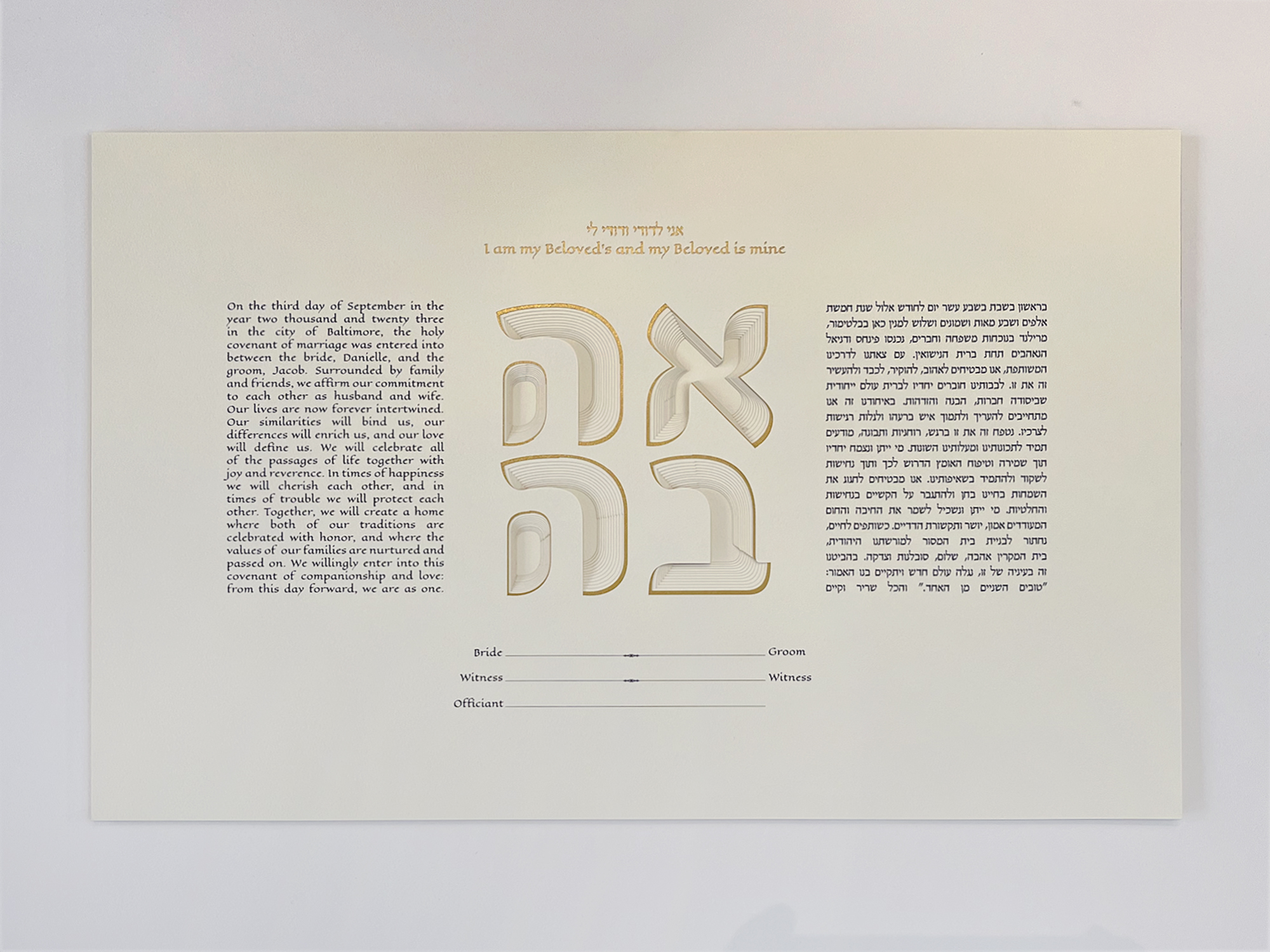 This Ketuba will be customized with your names, location and wedding date.