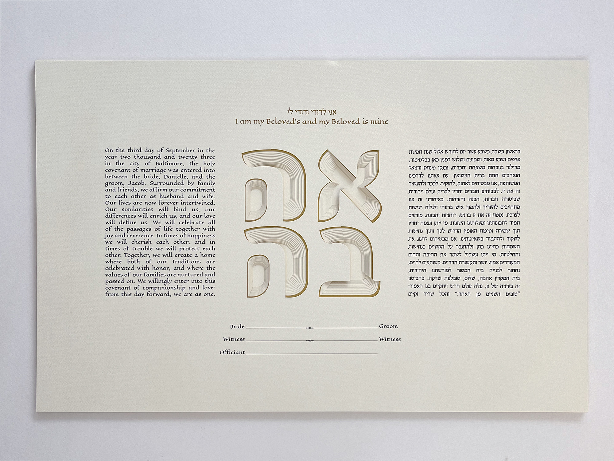 Our Ketubahs are cut out on fine art paper of the highest quality