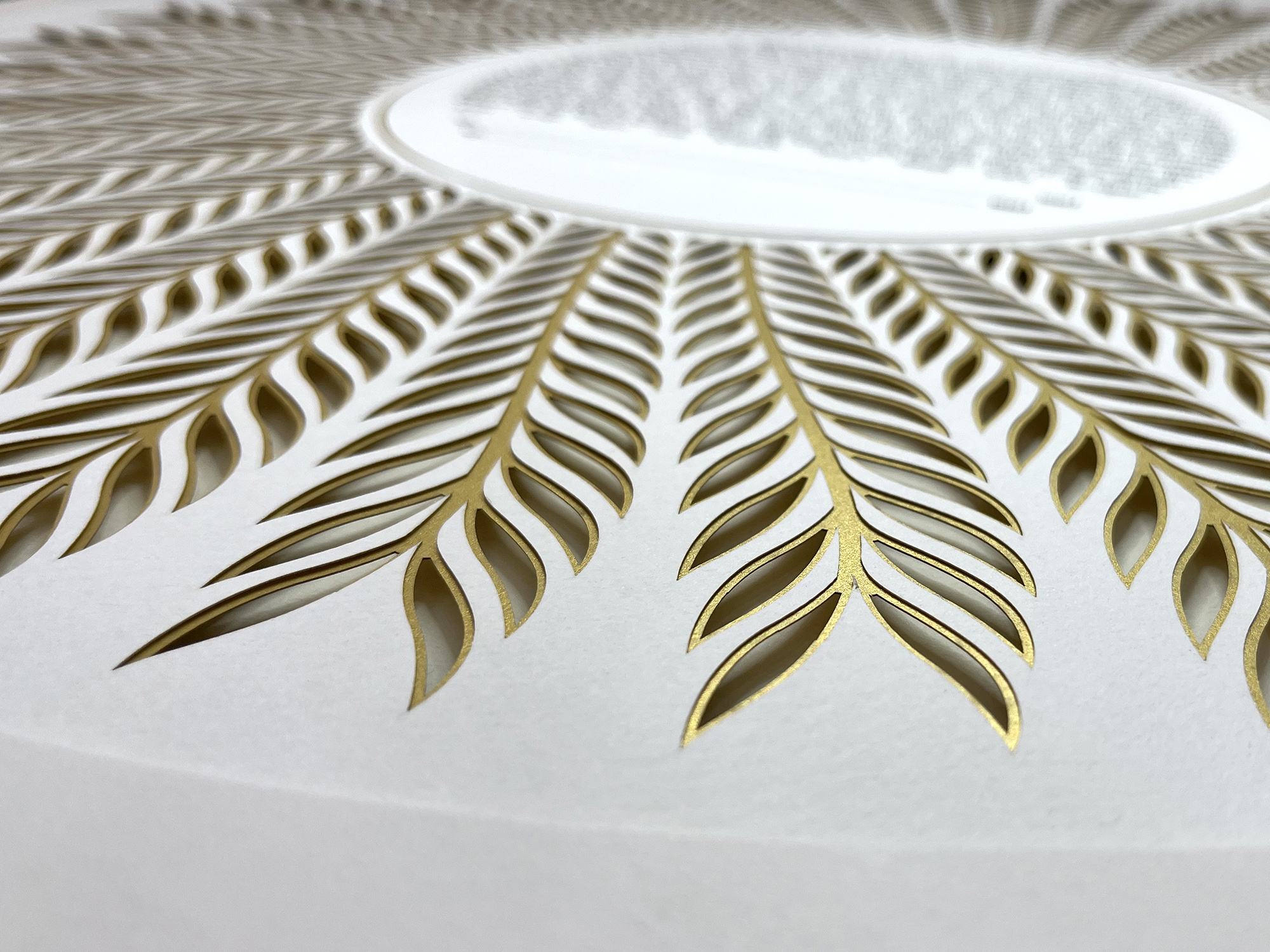 This Ketubah is a Unique and elegant paper cut for you to keep as a lifetime memory from your most special day and the perfect wedding vows picture for you! This papercut Ketubah is a cut out of two Peacocks painted with rich colors from watercolor paint. In the center painted with 24Kgold Gold leaf are the Beautiful words “I am my beloved’s and my beloved is mine”